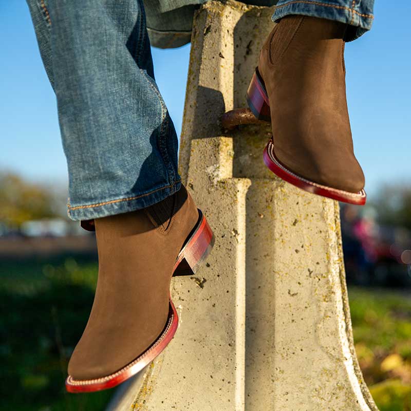 Un modelo necesario para tener en tu armario, los botines vaqueros para hombre Tapalpa son elaborados de manera casi artesanal por la marca Bayo Boots. Este tipo de botines está elaborado con un fino tipo de piel Nobuck en un elegante color chocolate que combina a la perfección con tus atuendos. El modelo Tapalpa cuenta con una punta cuadrada que se ve hermosamente reforzada por una doble costura en contraste, y su tipo de suela de vaqueta es ultra resistente.