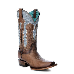 Bota Vaquera Bordadas Blanco Brillo Azul