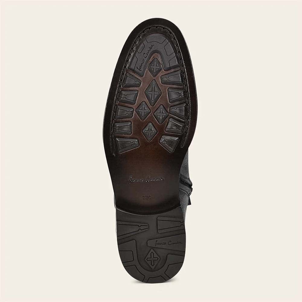 Te sentirás de lo más elegante con Botin Cuadra Diego Negro, una bota de vestir para caballero fabricada con piel genuina de venado. Su herraje de monograma Franco Cuadra en un costado la hace perfecta para cualquier ocasión. El cierre interno asegura que esta bota se ajuste perfectamente a tu medida. La suela de cuero con injerto de TPU ofrece comodidad y una sensación de lujo.
