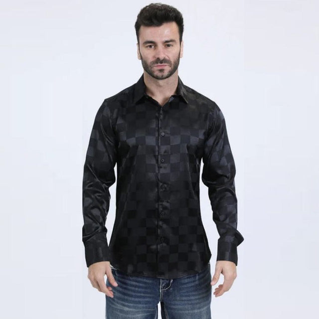 Camisa Platini Jacquard Modern Fit Negra - S está agotado y se enviará tan pronto como vuelva a estar disponible.