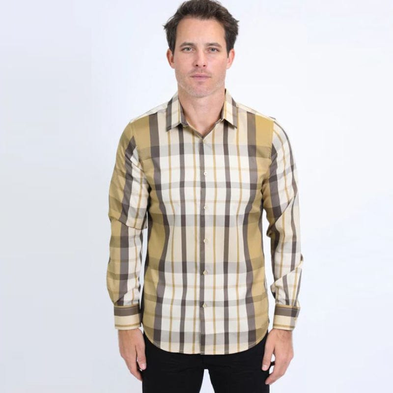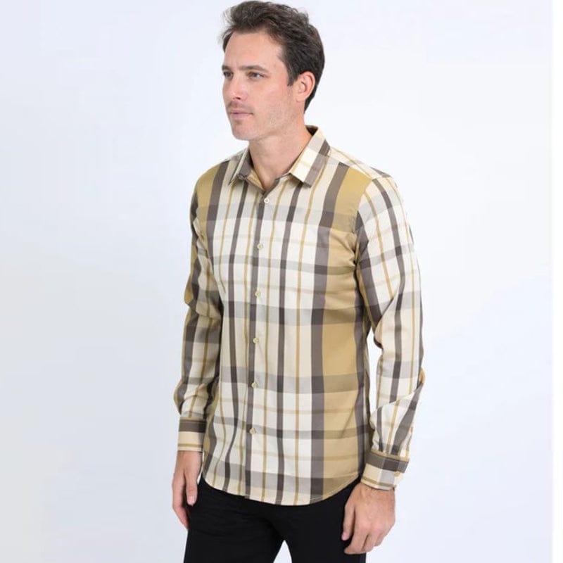 Añade un toque de frescura y color a tu guardarropa con nuestra camisa Platini. Este diseño vibrante combina patrones en beige y amarillo, ideal para un estilo veraniego y dinámico. Perfecta para días soleados o para añadir un aire alegre a tus noches. Combínala con pantalones claros o incluso unos shorts para un look relajado pero elegante.