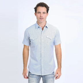 Sumérgete en el espíritu del Oeste americano con esta camisa vaquera de alto rendimiento. Su llamativo estampado azteca y su cómodo ajuste la hacen perfecta para cualquier ocasión.