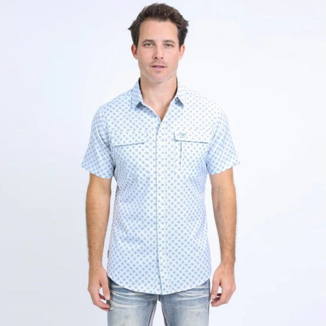 Camisa Platini Sleeve Aztec Rombos Blanca - M está agotado y se enviará tan pronto como vuelva a estar disponible.