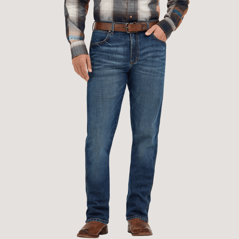 Los vaqueros ajustados Wrangler® Retro® hacen un guiño a nuestra historia al tiempo que introducen cortes y lavados adecuados para el vaquero moderno. Diseñados con un ajuste más ceñido y una abertura en la pierna que aún cae cómodamente sobre las botas, nuestros jeans ajustados de pierna recta Wrangler® para hombre añaden un estilo extra al look clásico que amas. Estos jeans se sientan bajos en la cintura y facilitan mostrar tu hebilla de cinturón favorita. Ese detalle de diseño es nuestra herencia occidental que se muestra, algo que sucede a menudo con la colección Wrangler® Retro®.
