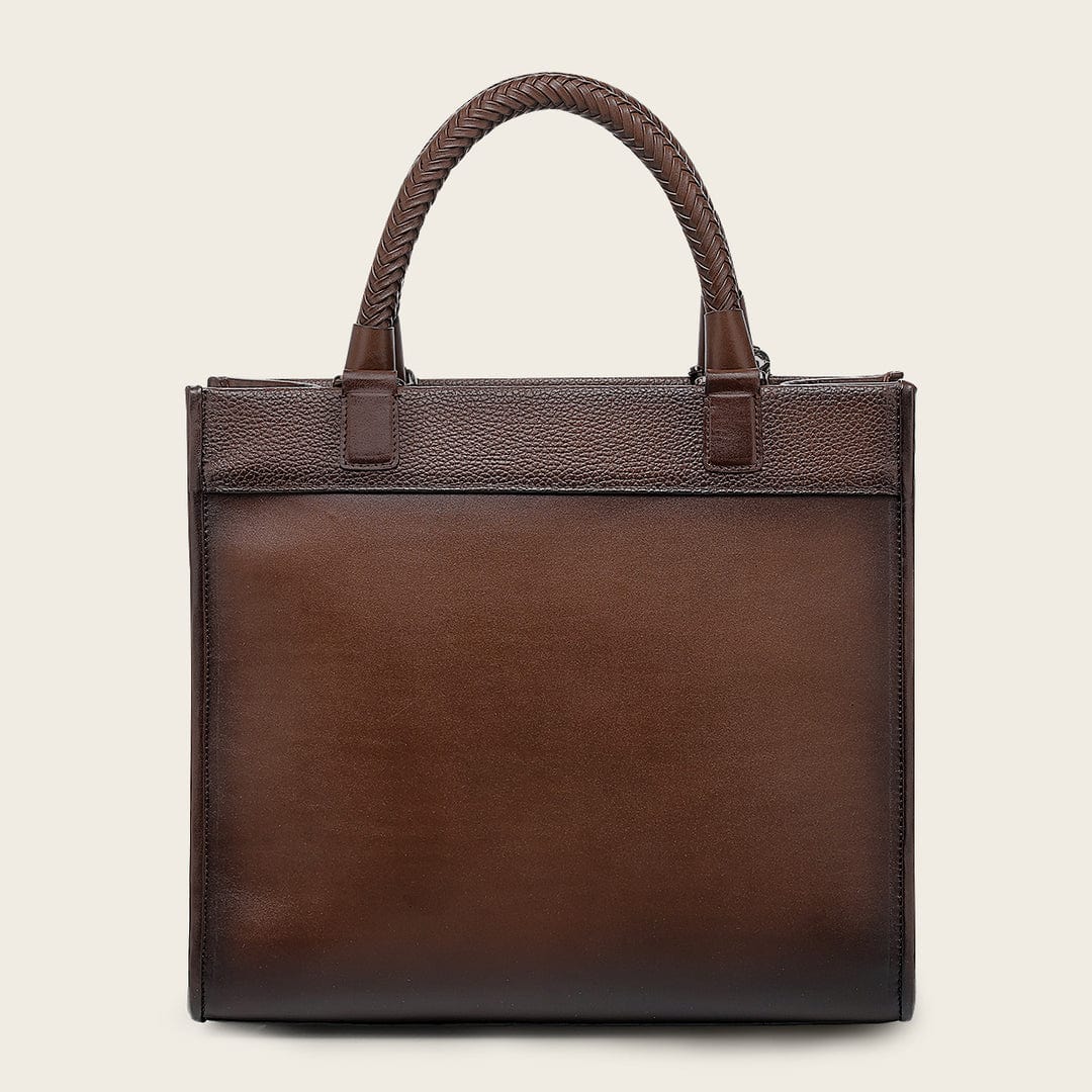 Bolso tote para dama en piel genuina de bovino. Presenta tejido artesanal sobre grabado láser, aplicación metálica del logotipo Cuadra, un asa corta de la cual cuelga una aplicación doble del monograma Cuadra y una borla de piel, un compartimento con bolsillo interno asegurado con cierre. Asegurada con cierre.