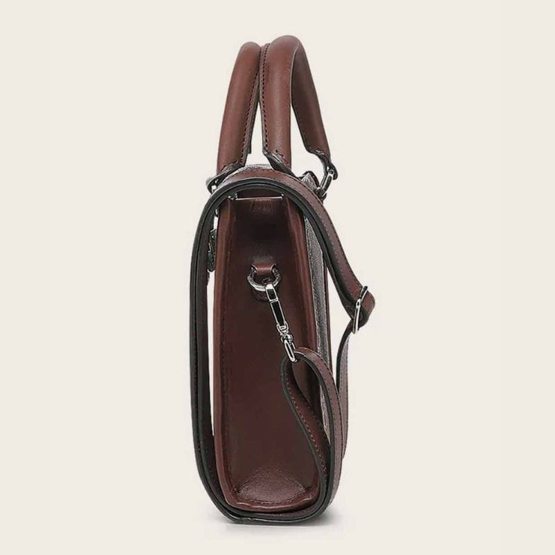 Luce un estilo audaz con este bolso geométrico elaborado en auténtica piel de bovino y carunga. Diseñado para mujeres amantes de los accesorios únicos y de alta gama, este bolso combina lujo, textura y elegancia en una pieza impresionante.