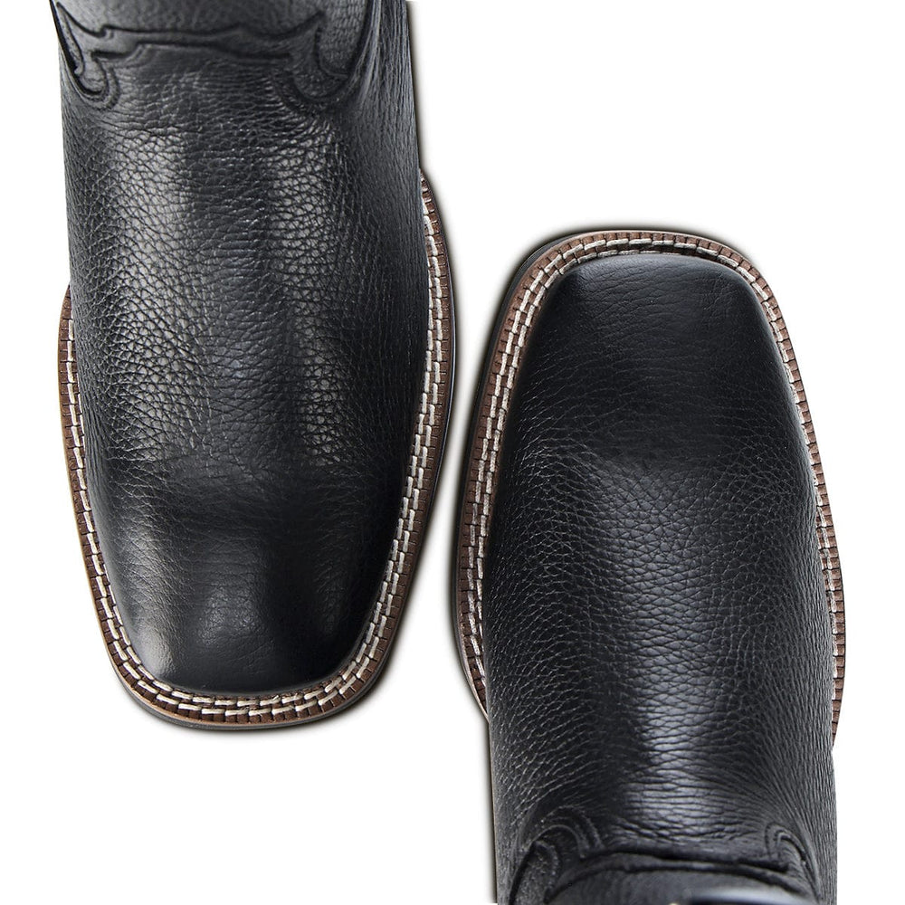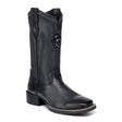 Bota para hombre elaborada en piel genuina de venado, reconocida por su suavidad, resistencia y elegancia natural. Su diseño en color negro resalta con costuras decorativas en contraste y el distintivo logotipo metálico de Cuadra, símbolo de autenticidad y estilo. La punta cuadrada y el tacón tradicional aportan un equilibrio perfecto entre comodidad y carácter. Ideal para el hombre que aprecia la tradición, la calidad artesanal y la sofisticación moderna en cada paso.