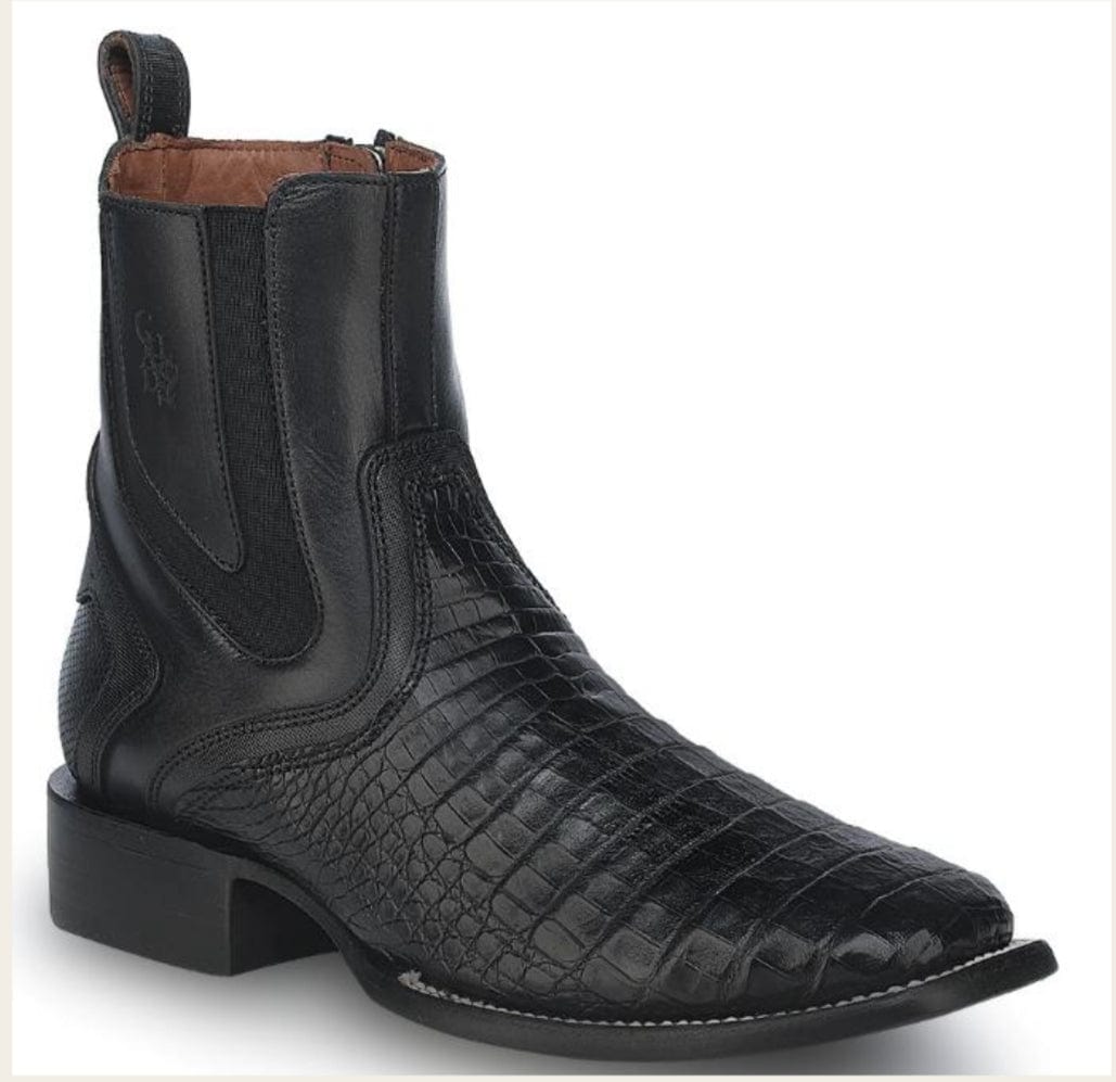 El equilibrio perfecto entre tradición, lujo y estilo contemporáneo. Elaborado con piel genuina de caimán, este botín destaca por su textura exótica y su tono café profundo, que aporta un aire de sofisticación y exclusividad. Su diseño artesanal y atención a los detalles hacen de este calzado una pieza única, ideal para quienes buscan destacar con un estilo auténtico y refinado.