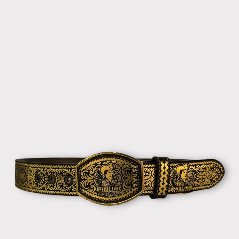 Este sofisticado cinturón El Rey del Corrido Oro es el accesorio perfecto para resaltar cualquier atuendo. Hecho con materiales premium, su diseño exclusivo y elegante aporta un toque de lujo a tu estilo. Completa tu look con este cinturón y deje que su brillo dorado le dé un toque artístico y refinado a tu vestuario.