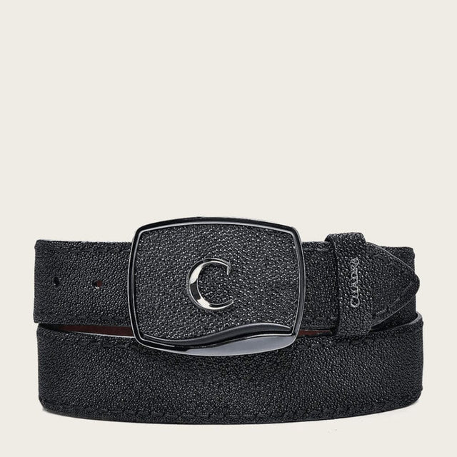 Dale un giro de lujo a tu estilo western con el cinturón Cuadra para caballero, elaborado a mano en piel exótica de mantarraya combinada con piel de bovino. La textura única de la mantarraya cubre toda la correa, ofreciendo un diseño sofisticado y lleno de carácter.