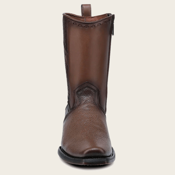 Disfruta el lujo y la exclusividad con estas botas de cuero genuino de venado para hombre de Cuadra. Con detalles hechos a mano y la comodidad de su cierre interno y suela de cuero con injerto de TPU. El logotipo grabado y el monograma Cuadra en los remaches añaden un toque artístico a tu atuendo.