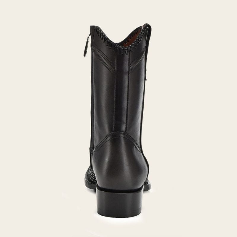 Bota casual para caballero en piel genuina de bovino. Con grabado láser de logotipo Cuadra en tubo. Con piel tejida a modo artesanal al frente, en orejas y parte superior. Ajuste interno de cierre. Suela de cuero con TPU.