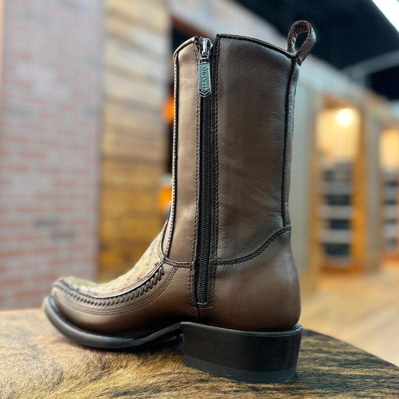 Estas botas vaqueras para hombre de la marca Cuadra son el epítome de la elegancia y la exclusividad. Confeccionadas con piel de bovino y avestruz en tono café, sombreadas a mano con un diseño grabado a láser en el tubo. Además, cuentan con cierre lateral interno para una inserción más cómoda.