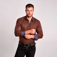 Esta elegante camisa café está confeccionada en algodón de alta calidad , ofreciendo suavidad, frescura y comodidad durante todo el día. Su diseño presenta un corte holgado, que realza la silueta masculina con un ajuste moderno y sofisticado, ideal tanto para ocasiones formales como para un look casual refinado.