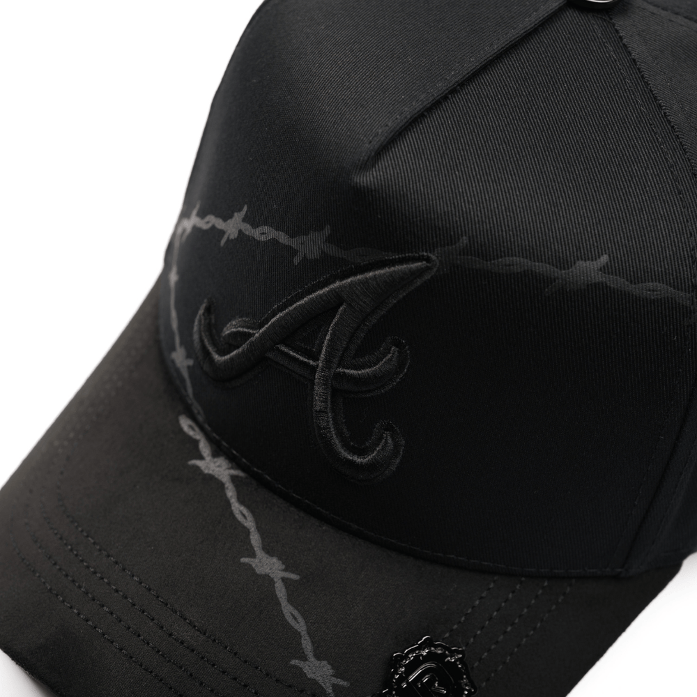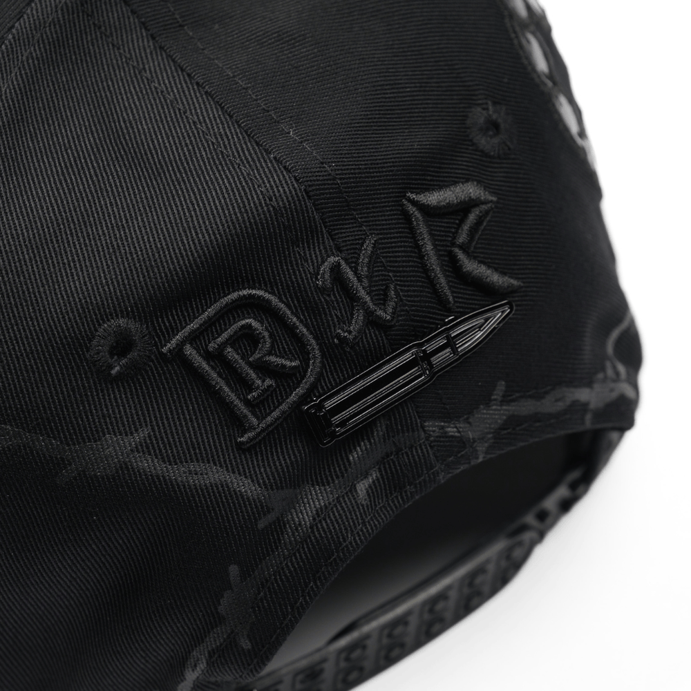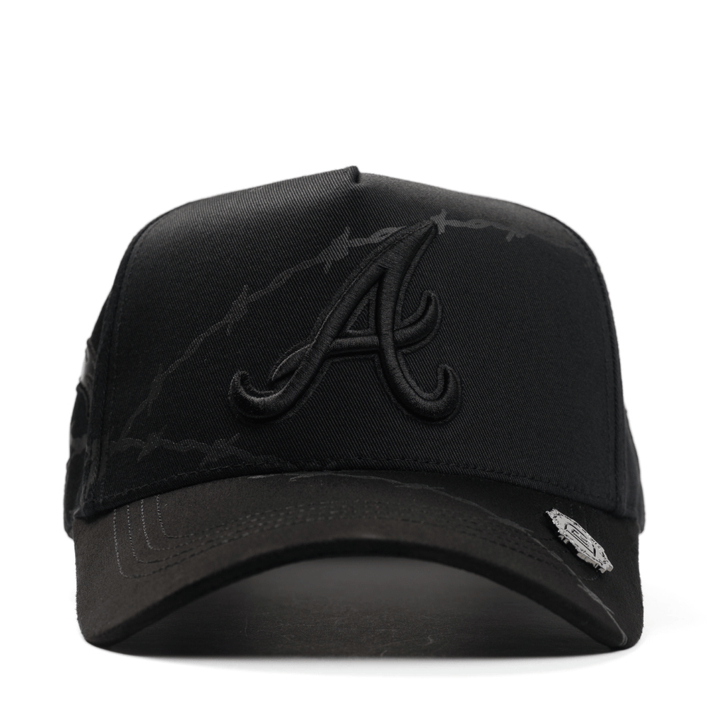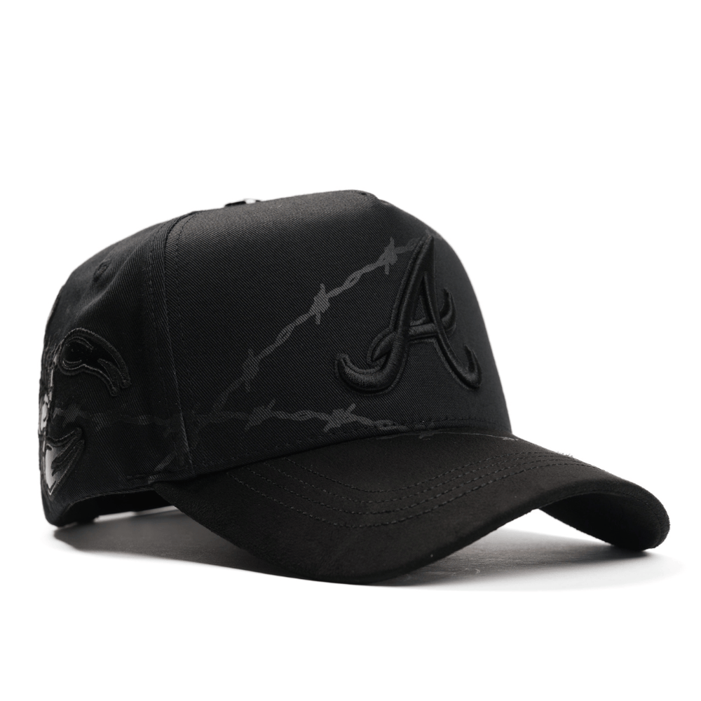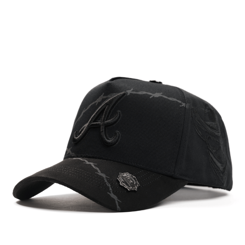 La De Registro Spiked Rider es una gorra que impone carácter desde cada ángulo. Su diseño en negro profundo integra un gráfico de púas que recorre toda la estructura, creando una textura visual agresiva y única. Al frente, el bordado tonal de la "A" aporta sobriedad, mientras que los detalles ocultos elevan su identidad.