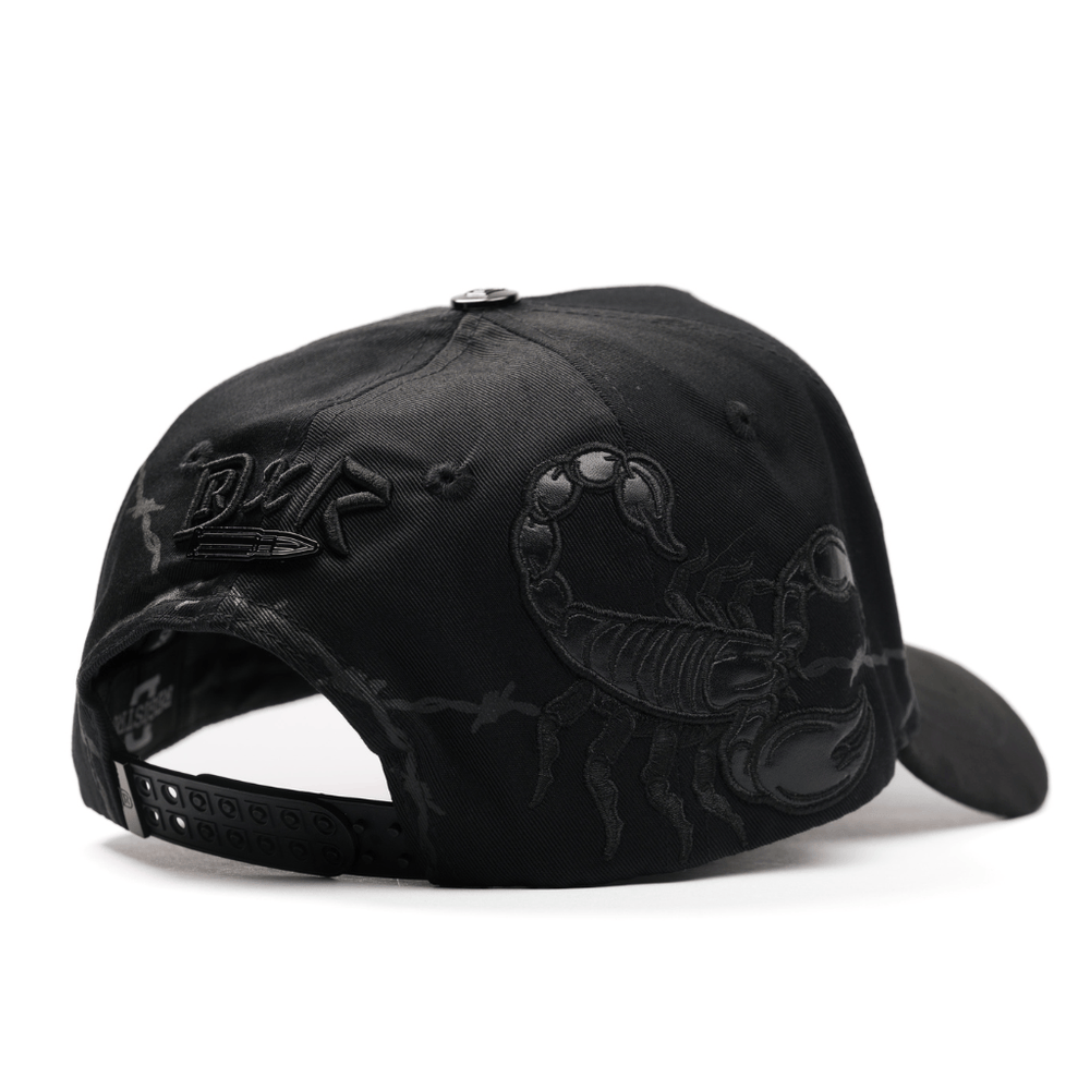 Incorpora bordados distintivos como el alacrán y la calavera, elementos que refuerzan su esencia rebelde con un toque western oscuro. Su visera curva y construcción estructurada garantizan comodidad, haciendo de esta pieza una declaración de estilo para quienes buscan algo diferente y con actitud.