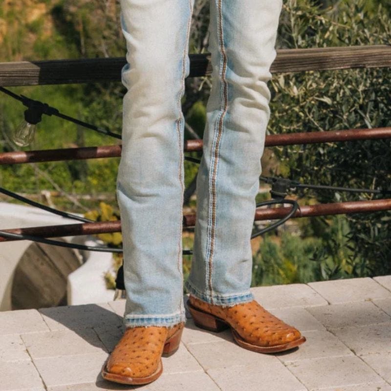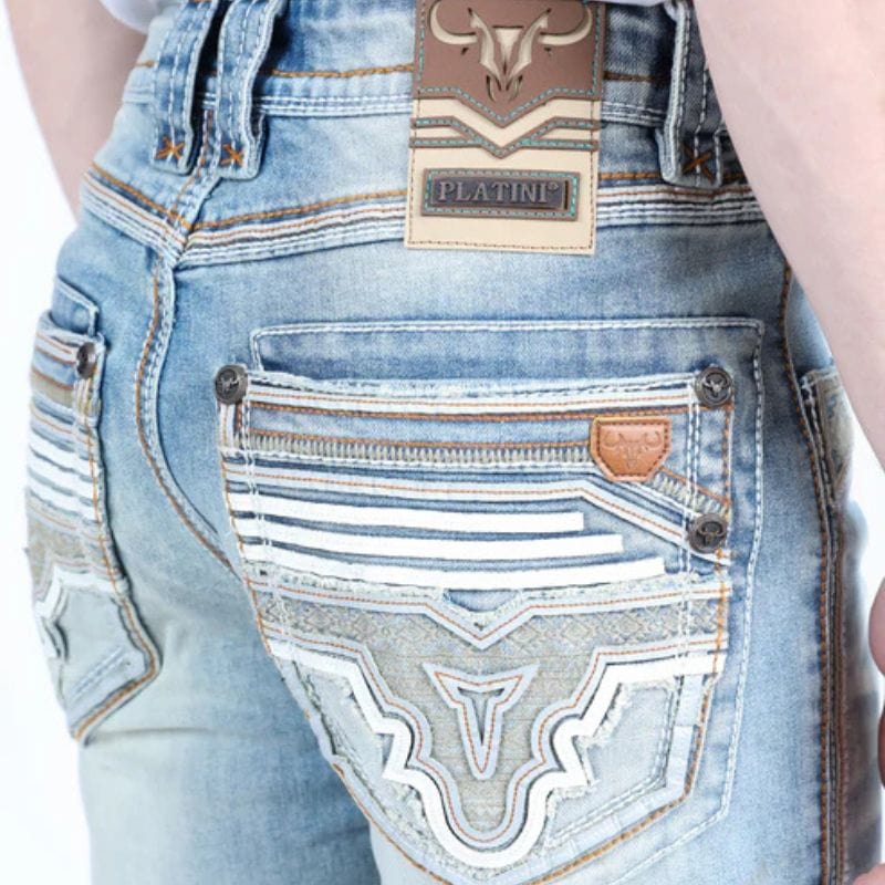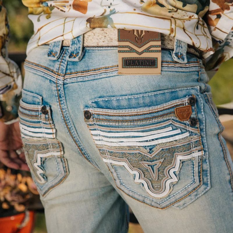 Realza tu guardarropa de inspiración western con nuestros jeans de corte recto Platini Holt, un básico atemporal diseñado para el vaquero moderno. Estos jeans, confeccionados con detalles de estilo vaquero, cuentan con triple costura y una silueta estilizada en el asiento, el muslo y la rodilla.