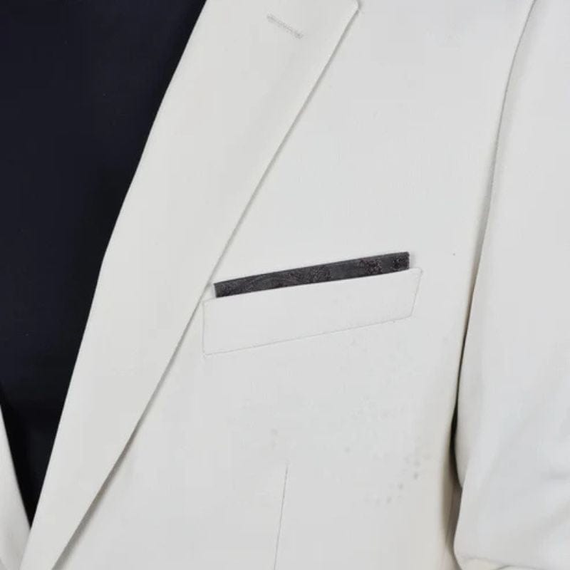 Eleva tu atuendo de noche con nuestro blazer para hombre Modern Fit Stretch Date Night, meticulosamente diseñado para ofrecer sofisticación y versatilidad. Este refinado blazer cuenta con dos bolsillos falsos en la cadera y un bolsillo en el pecho adornado con un pañuelo de bolsillo fijo en contraste, que le da un toque distintivo. El forro interior presenta el mismo diseño que el pañuelo de bolsillo falso, añadiendo un elemento cohesivo al conjunto.