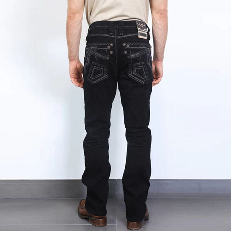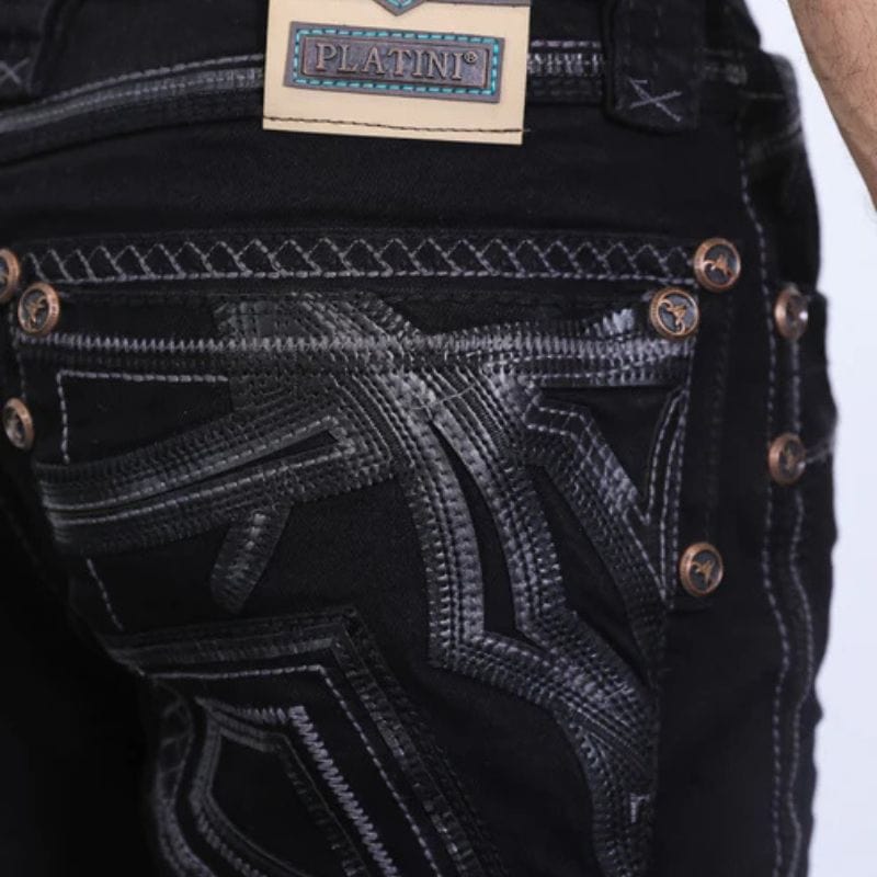 Realza tu guardarropa de inspiración western con nuestros jeans de corte recto Platini Holt, un básico atemporal diseñado para el vaquero moderno. Estos jeans, confeccionados con detalles de estilo vaquero, cuentan con triple costura y una silueta estilizada en el asiento, el muslo y la rodilla.