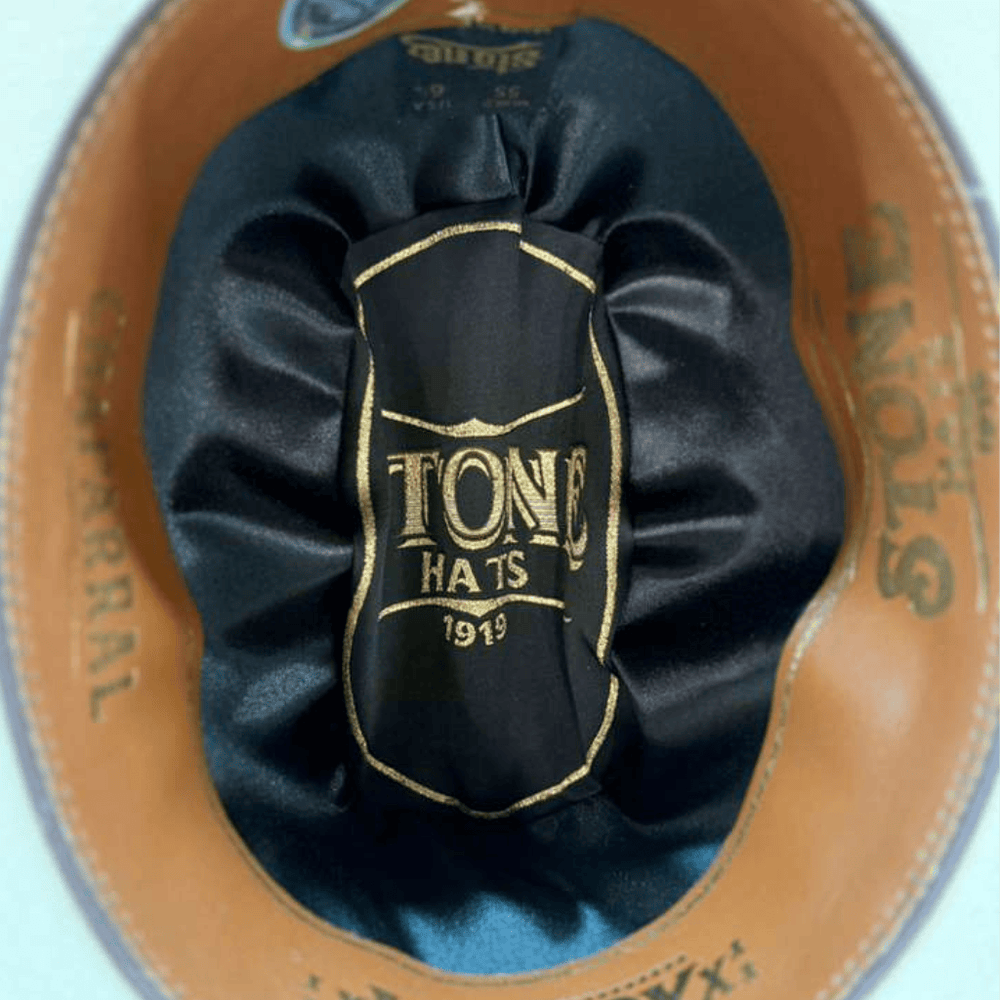 El interior acolchado con sello Stone Hats garantiza comodidad y autenticidad en cada uso.
