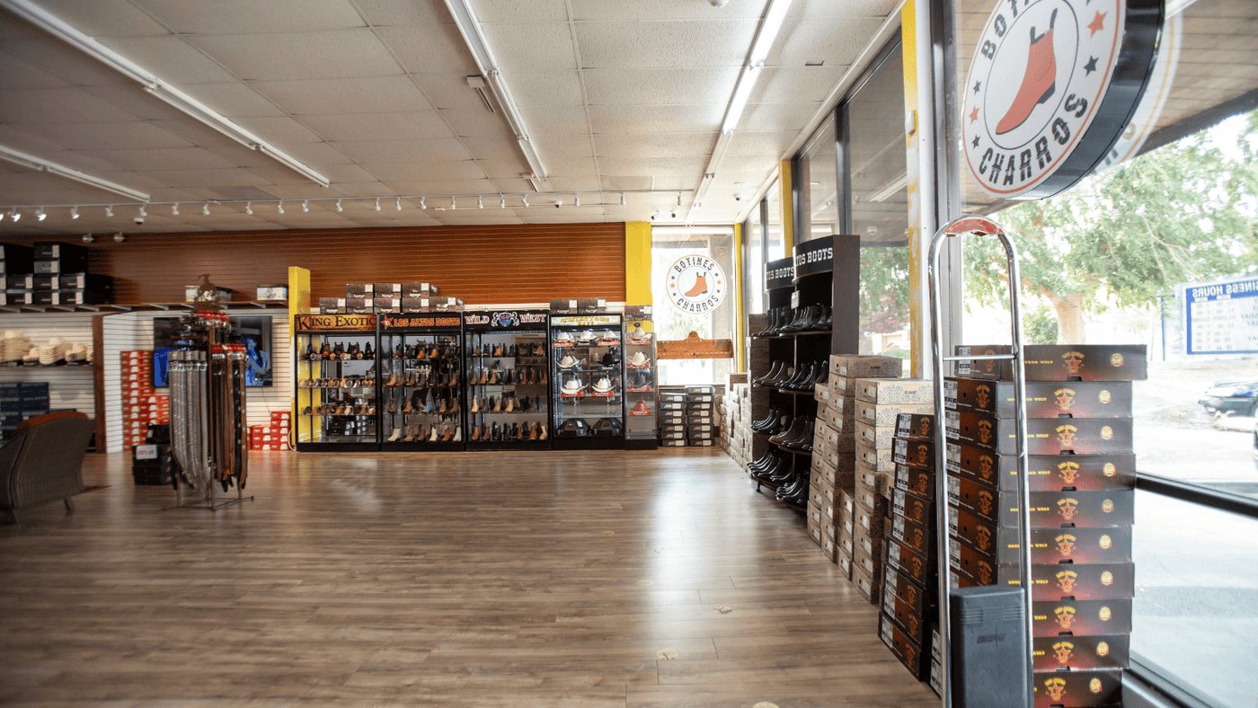 Hoy, Botines Charros cuenta con tiendas físicas en Fresno y Ontario, donde ofrecemos una gran selección de botas vaqueras y accesorios premium, atendiendo a clientes que buscan botas vaqueras, accesorios y ropa de alta calidad.