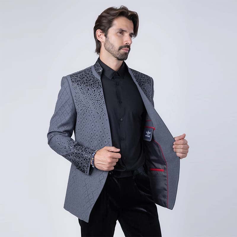 Trivon Rhinestone Grey Blazer